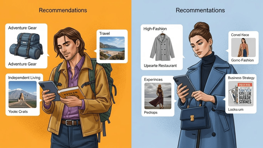 - A Loja Online de Moda Angolana: A Maria, de Luanda, visita o site e procura por vestidos tradicionais. Uma semana depois, ela volta e vê um banner com “Novos vestidos de wax inspirados em Benguela, Maria”. Ela sente que a loja a “lembrou” e a compreendeu. Isto é personalização.