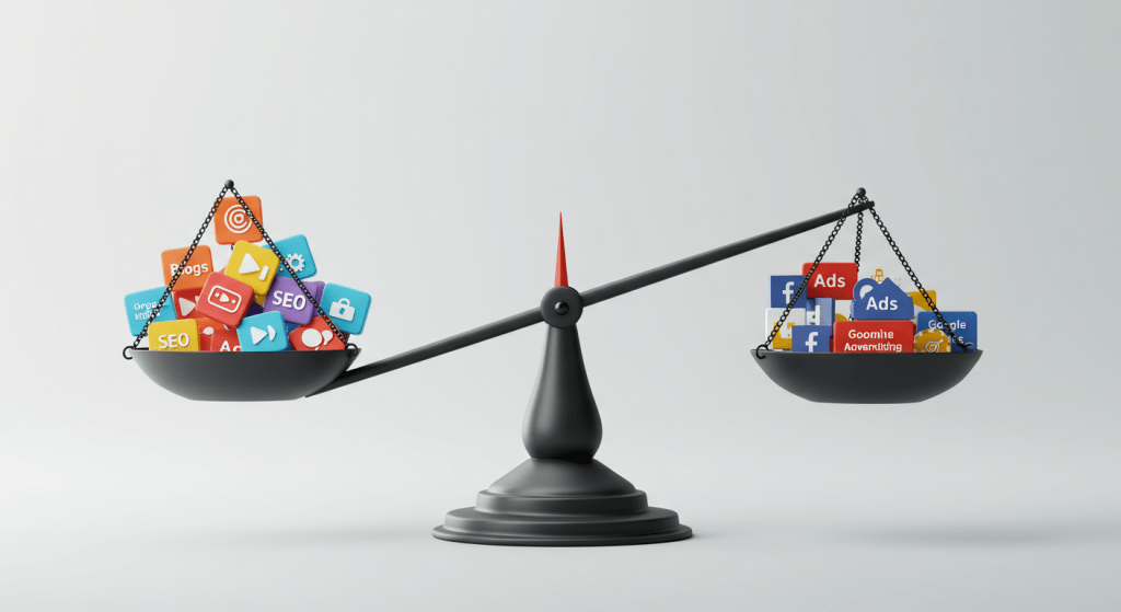 Essa pergunta é um verdadeiro campo de batalha na cabeça de todo empreendedor e criador de conteúdo. De um lado, temos a promessa sedutora do crescimento orgânico: a ideia romântica de que, se o seu conteúdo for bom o suficiente, ele vai se espalhar como fogo, atraindo uma legião de fãs leais sem que você precise gastar um único centavo. É o caminho “puro”, o sonho de todo criador. Do outro lado, há o mundo dos anúncios pagos, um universo que parece complexo, caro e um pouco intimidador. É a rota do “atalho”, que muitos veem com desconfiança, como se fosse uma forma de “comprar” um sucesso que não foi merecido. Eu vivi esse dilema na pele, tentando por anos fazer a rota orgânica funcionar sozinha, por teimosia e, admito, por medo de perder dinheiro com anúncios. Este artigo é a conversa que eu gostaria de ter tido comigo mesmo naquela época. Quero te mostrar, de forma honesta e sem jargões, o que aprendi nessa jornada e por que a resposta para essa pergunta é muito mais interessante do que um simples “sim” ou “não”.